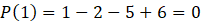1 | 1 | 1 – 2 = -1 | -1 – 5 = -6 | -6 + 6 = 0 |