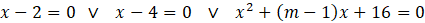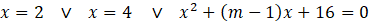 W tym przypadku równanie ma tylko dwa rozwiązania równe 2 i 4.