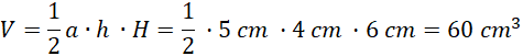 , gdzie a – bok trójkąta w postawie, h – wysokość podstawy padająca na ten bok, H – wysokość graniastosłupa.