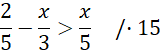 Wymnóż obie strony nierówności przez liczbę podzielną przez 3 i 5 jednocześnie, czyli przez 15.