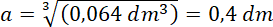 - pole powierzchni sześcianu, którego objętość jest o 87,5% mniejsza od objętości sześcianu o krawędzi 0,8 dm.