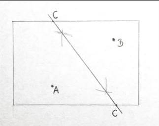 W tym zadaniu znajdź konstrukcyjnie punkt jednakowo odległy od punktów A i B, znajdujący się na brzegu basenu.