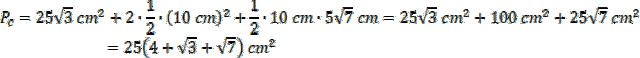Oblicz pole powierzchni całkowitej, czyli pole podstawy, pole 2 identycznych ścian oraz pole trzeciej ściany innej niż pozostałe: