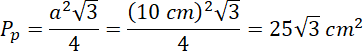 Podstawą ostrosłupa jest trójkąt równoboczny, którego bok ma długość 10 cm. Policz pole podstawy, korzystając ze wzoru: