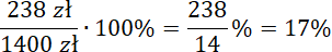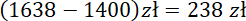 Pani Ewa wzięła kredyt w wysokości 1400 zł, po roku wpłaciła do banku kwotę 1638 zł. Oblicz, ile odsetek naliczono: