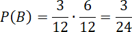 zdarzenie B – za pierwszym razem otrzymasz kulę z numerem, który jest liczbą podzielną przez 4 (4, 8, 12), a za drugim kulę z numerem nieparzystym (1, 3, 5, 7, 9, 11). Pomnóż dwa prawdopodobieństwa: