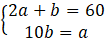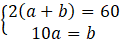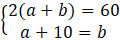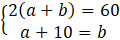Wskaż, który z układów równań: , , , opisuję zależność: Obwód prostokąta o bokach długości a i b jest równy 60. Jeden z boków tego prostokąta jest o 10 dłuższy od drugiego.