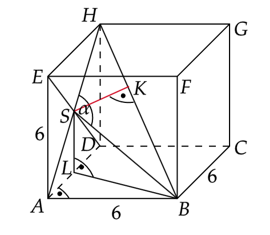 Zauważ, że odcinek SH jest równy połowie długości przekątnej ściany sześcianu. Oblicz jego długość.