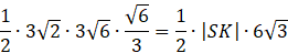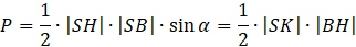 Zapisz dwa różne wzory na pole trójkąta SBH. Jeden z nich niech będzie z sinusem, a drugi z szukaną długością wysokości SK.