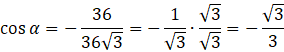Skoro cosinus jest ujemny, to sinus musi być dodatni. Usuń niewymierność z mianownika, czyli pomnóż licznik i mianownik ułamka przez