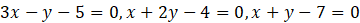 Wyznacz pole trójkąta ABC, którego boki znajdują się na prostych