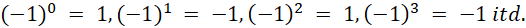Można zauważyć tu pewien schemat: wynikiem potęgowania w tym przykładzie zawsze będzie 1 lub -1. Pamiętaj o nawiasie przy -1.
