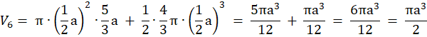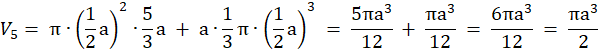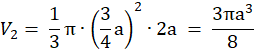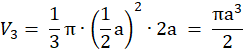 Objętość równa jest objętości stożka o promieniu podstawy długości a i wysokości