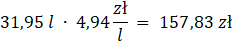 Oblicz, ile litrów benzyny i za ile pieniędzy spali samochód na trasie 450 km, jeśli zużywa 7,1 litra benzyny na 100 km, a litra kosztuje 4,94 zł.