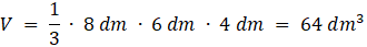 Objętość ostrosłupa to iloczyn pola powierzchni tego ostrosłupa przez jego wysokość, pomniejszony 3 razy: