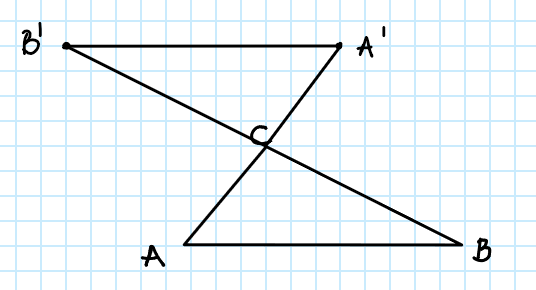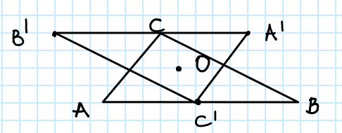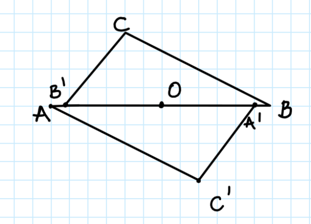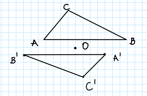 Punkt A jest symetryczny do punktu B względem punktu O (A jest obrazem punktu B w symetrii względem punktu O) jeżeli: