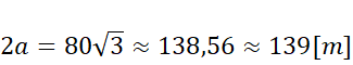 Najpierw zauważ, że dany trójkąt jest połową trójkąta równobocznego. Wysokość trójkąta równobocznego wyraża się wzorem: , gdzie to bok trójkąta równobocznego, a to jego wysokość. Oblicz z podanego wzoru i pomnóż otrzymany wynik przez 2.