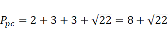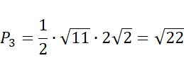 Oblicz pola trzech trójkątów prostokątnych. Następnie wykorzystując twierdzenie Pitagorasa, wylicz długości przeciwprostokątnych tych trójkątów i znając ich długości oblicz wysokość czwartego trójkąta, korzystając ze wzoru na pole trójkąta oblicz jego pole. Dodaj do siebie pola wszystkich trójkątów.