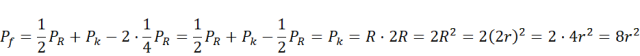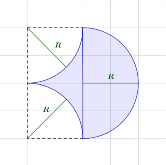 Zauważ, że figura składa się z półokręgu o promieniu R (dwie kratki) i prostokąta, którego boki wyrażają się za pomocą promienia R, i z którego wycięto półokrąg o promieniu R. Oblicz pola poszczególnych figur i dodaj je do siebie.