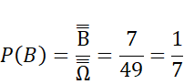 Zdarzeniu B sprzyja 7 możliwości – wybór przez amerykańską sondę jednej planety (7 opcji) i przez rosyjską dokładnie takiej samej (czyli 1 opcja).