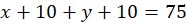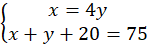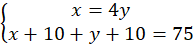 Skoro matka jest 4 razy starsza od córki, zapisz: . Jeżeli za 10 lat (wiek matki za 10 latto x + 10, a wiek córki to y + 10) będą miały razem 75 lat to zapisz . Zapisz układ równań: .