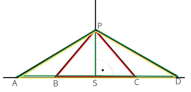 Zaznacz odpowiednimi kolorami odpowiednie trójkąty na rysunku.