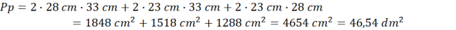 Wiedząc, że każdy z wymiarów pudła jest o 3 cm większy od wymiaru lampy oblicz jego pole powierzchni.