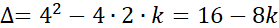 Wyróżnik funkcji kwadratowej to inaczej delta. Podstaw wzór funkcji do wzoru na deltę i przyrównaj do zera, aby obliczyć wartość współczynnika k.