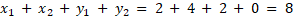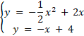 Spośród podanych wybierz liczbę określającą sumę x1 + x1 + y1 + y2, gdzie są to odpowiednio pierwsze i drugie współrzędne punktów wspólnych prostej y = –x + 4 i paraboli y =