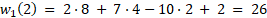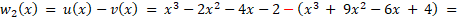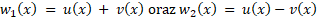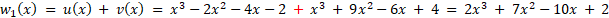 Znając punkty P i Q, prze które przechodzą wykresy wielomianów odpowiednio u(x) i v(x) wyznaczamy wartości współczynników k i m i zapisujemy postaci tych wielomianów. Następnie określamy wielomiany w1i w2 oraz obliczamy ich wartości dla argumentu x = 2.