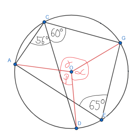 to kąt wpisany i oba są opisane na tym samym łuku GA, więc