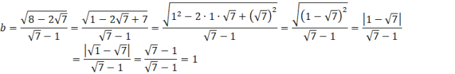 To zadanie musisz zacząć od uproszczeniu liczb a i b. Musisz zamienić wyrażenia pod pierwiastkami na kwadraty wyrażeń korzystając ze wzoru na kwadrat różnicy (a – b)2 = a2 – 2ab + b2. Następnie musisz skorzystać z tego, że