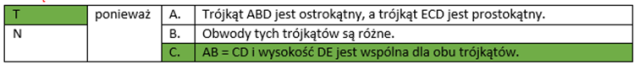 | T | ponieważ | A. | Trójkąt ABD jest ostrokątny, a trójkąt ECD jest prostokątny. |
