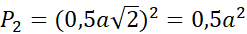 Jeśli bok kwadratu wpisanego tworzy z bokiem kwadratu wyjściowego kąt 45 stopni, to oznacza, że jego wierzchołki znajdują się na środkach boków kwadratu wyjściowego. Zatem jego boki, to przeciwprostokątne trójkątów o przyprostokątnych równych połowie długości boku wyjściowego kwadratu.