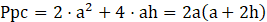 Wszystkich krawędzi w prostopadłościanie jest 12, przy czym 8 z nich ma tę samą długość, bo w podstawie jest kwadrat. Pole powierzchni całkowitej takiego prostopadłościanu, to suma podwojonej wartości pola podstawy i 4 prostokątów o polu równym iloczynowi długości krawędzi i boku kwadratu z podstawy.