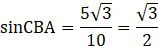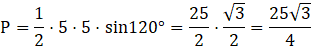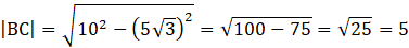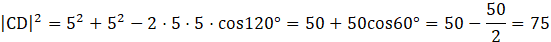 Wyznaczono długość BC z twierdzenia Pitagorasa. Następnie, aby poznać kąt CBD wyznaczamy Kąt ABC. Znając dwie długości boków i kąt między nimi wyliczamy pole trójkąta CBD.