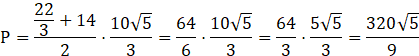 Obliczamy długość brakującego boku trójkąta z podanej wartości funkcji sinus. Następne jedynki które geometrycznej obliczamy cosinus tego kąta, aby poznać brakującą długość. Następnie korzystamy ze wzoru na pole trapezu