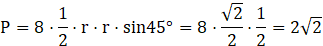 Powierzchnia ośmiokąta foremnego wpisanego w okrąg o promieniu 1 wynosi