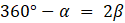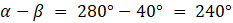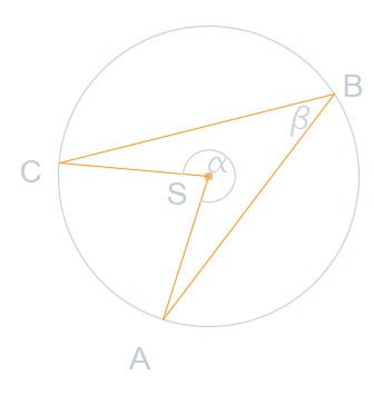 Dany jest okrąg o środku w punkcie S. Jeżeli α + β wynosi 230°, to ile wynosi różnica α – β?