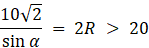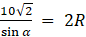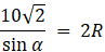 Niech R oznacza długość promienia okręgu opisanego na trójkącie, a szukany kąt