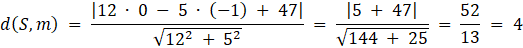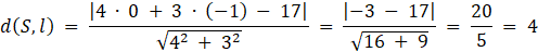 W tym zadaniu musisz pokazać, że podany okrąg jest wpisany w trójkąt ABC, czyli że proste, które zawierają boki trójkąta ABC, są odległe od punktu S o 4.