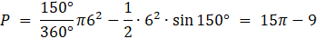 Pole zamalowanej części jest równe różnicy pól wycinka i trójkąta równoramiennego o ramieniu długości 6.