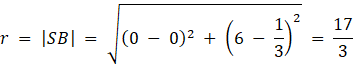 Długość promienia tego okręgu możesz wyznaczyć jako odległość między punktami S i B, zatem:
