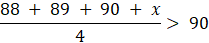 Niech x będzie liczba dołożona do zestawu: 88, 89, 90. Zgodnie z warunkami zadania powinna zachodzić nierówność: