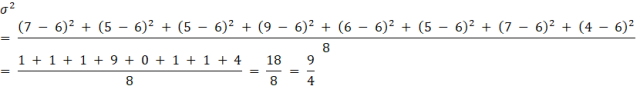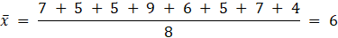 Do tego przedziału należą liczby: 7, 5, 5, 6, 5, 7.