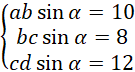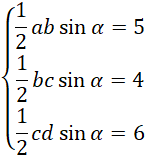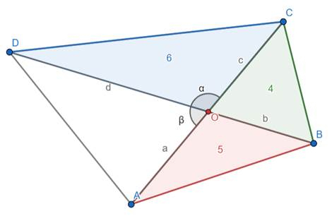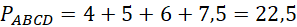 Oblicz pole czworokąta ABCD (suma wszystkich pól trójkątów):