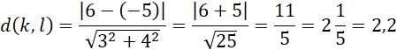 Ponieważ proste są równoległe, możesz skorzystać z poniższego wzoru na odległość między dwiema prostymi równoległymi: