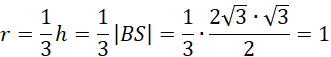 ) a promień tego okręgu jest równy jednej trzeciej wysokości, czyli: