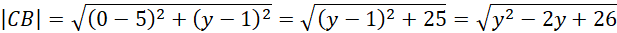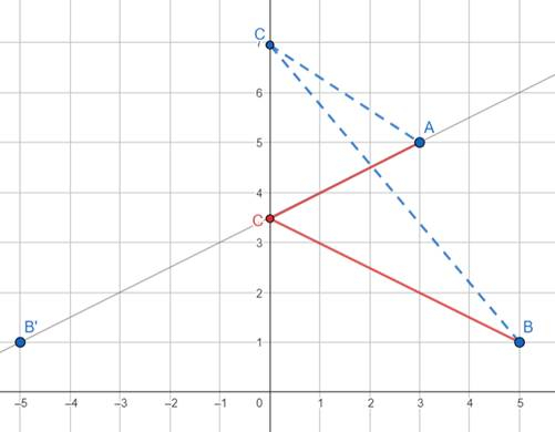 W tym zadaniu musisz wyznaczyć punkt na osi OY tak, aby łamana BCA była najmniejsza oraz obliczyć jej długość.