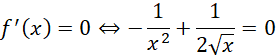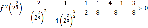 Druga pochodna w tym punkcie jest dodatnia, dlatego funkcja ma w tym punkcie minimum.